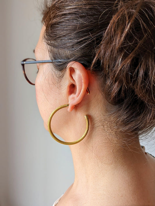 Boucles d'oreilles en Or Végétal et plaqué Or - Capim Dourado - Créoles
