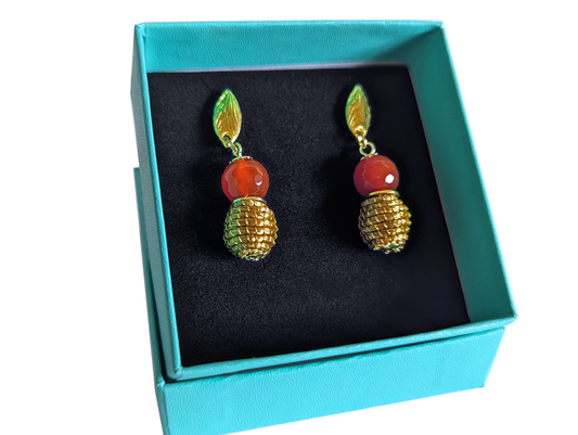 Boucles d'oreilles Agate de feu - Capim Dourado - Or Végétal et plaqué Or