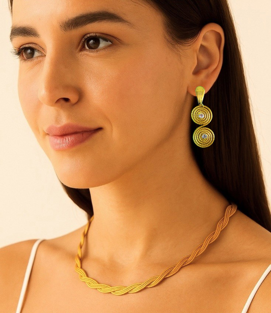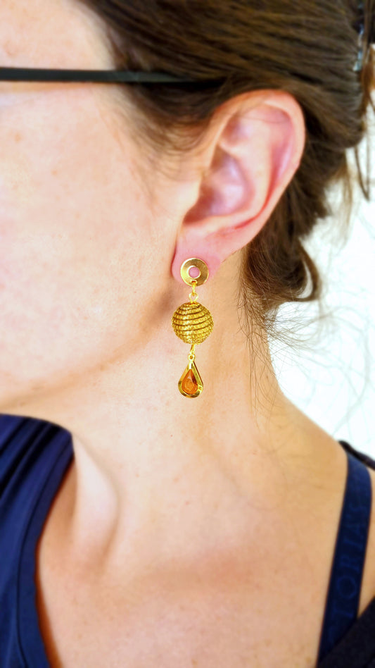 Boucles d'oreilles en Or Végétal et plaqué Or - Capim Dourado - Citrine