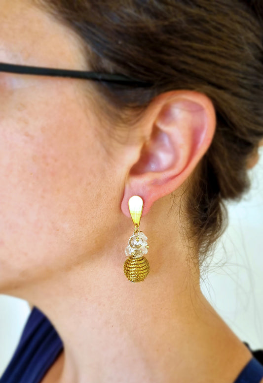 Boucles d'oreilles en Or Végétal et plaqué Or - Capim Dourado - Cristal