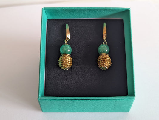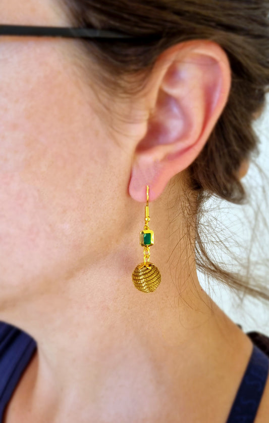 Boucles d'oreilles en Or Végétal et plaqué Or - Capim Dourado - Emeraude