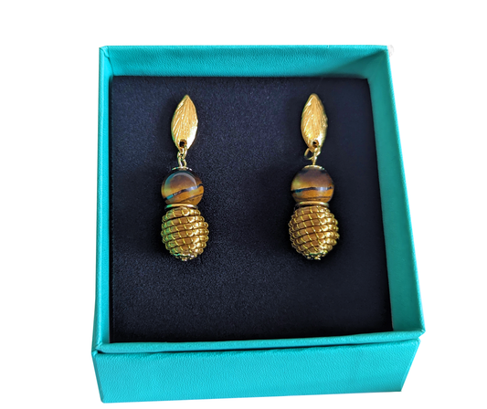 Boucles d'oreilles Oeil de Tigre - Capim Dourado - Or Végétal et plaqué Or