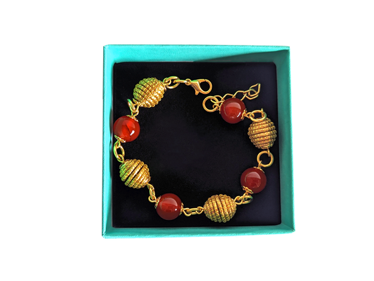Bracelet Agate de feu - Capim Dourado - Or Végétal et plaqué Or